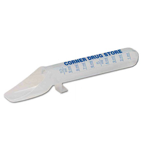 • Two teaspoon medicine spoon. The imprint includes both ml and tsp graduations and the product is always individually polybagged for no additional charge. The graduations will be printed to match the color of your imprint unless you choose the clear with raised graduations.