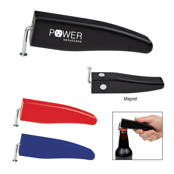 • Contoured shape for easy grip. Features hooked nail to pop off cap and concealed magnet to grab it. Magnet on backside.