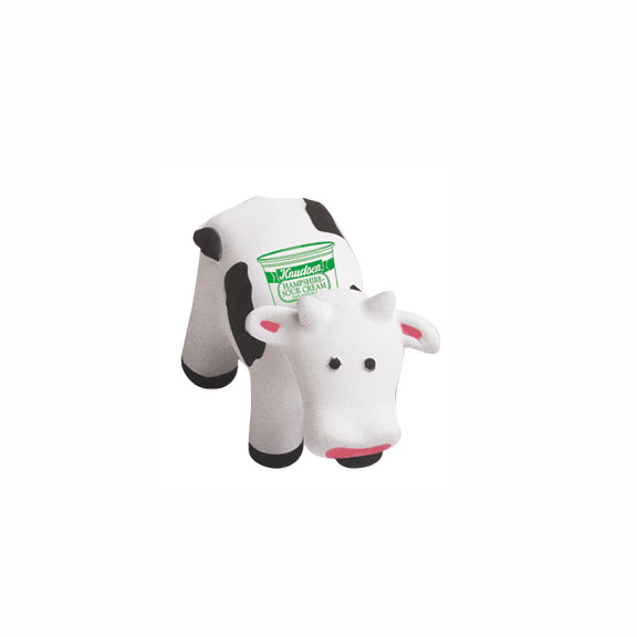 • Stress reliever in the shape of a white calico cow. Imprint available on top or side. Please specify.