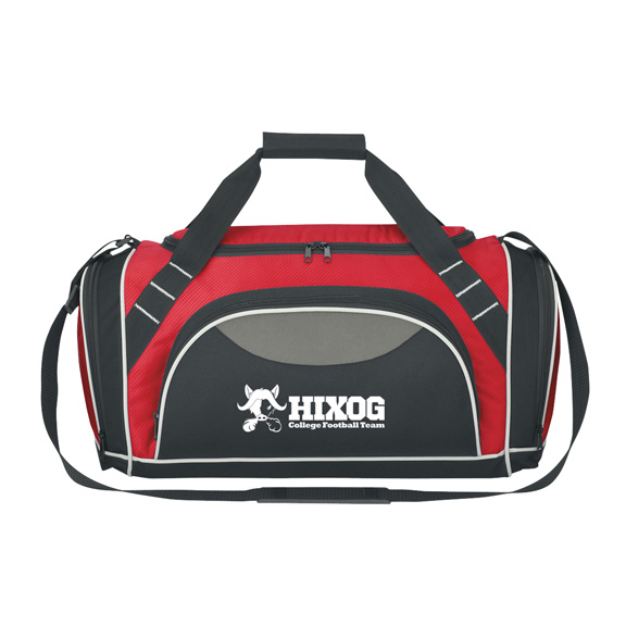 • No matter how many miles are traveled, this super weekender duffel bag will stay by their sides! This large duffel features a top double zippered compartment, adjustable shoulder strap, web handles with hook and loop closure, shoe compartments with an air vent, front and side zippered pockets all made of 600 denier polyester and Dobby material. Available in three stand out colors, this bag is a great giveaway for a variety of events. With and imprint of your logo, choose this for your next tradeshow or convention!