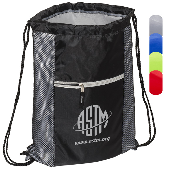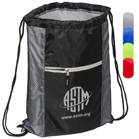 • 210D polyester with PU backing, zippered front pocket and color mesh accent side panels. Front pocket measures approximately 8 W x 11.5 H. Hand wash only. Recommended weight tolerance is 22 lbs.