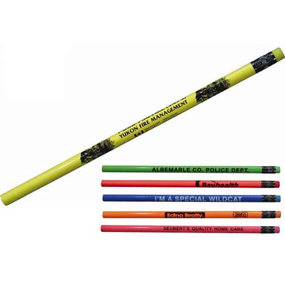 • Fluorescent wood pencil, features a neon eraser that matches pencil color. Popular neon pencil. A quality wood pencil.