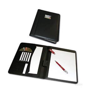 • Deluxe leather grain soft touch vinyl pad folio with full size notepad and abundant slots for business cards, CD`s, documents, etc. Included pen holder and patent pending lanyard strap for a USB let you make it a complete gift set! Chrome nameplate included. We have passed a comprehensive audit and we comply with International Labor Standards! ILS #R780-4429 Is a sophisticated gift for executives, students, and everyone else you can imagine.