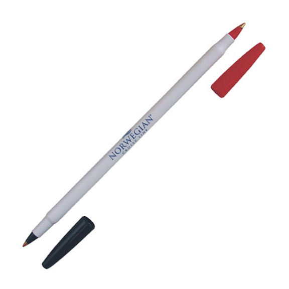 • 2 for the price of 1. This dual ended pen with a wide imprint area provides your customer with versatility and functionality. Ink color available with matching tips/caps.