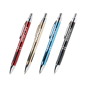 • Beautifully styled with a raised rubber grip for writing ease, our new Vienna ballpoint pen comes in 4 eye catching colors. Silver engraving matches the striking silver accents of this classic push action retractable. Available in Black ink only.