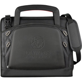 • Zippered closure. TechTrap elastic interior organizer. Holds an iPad. Front cover access pocket with business card holders and media organizers. 4 USB memory flash drive holders. 2 business card holders. Elastic pen loop. Gusseted document pockets. Detach