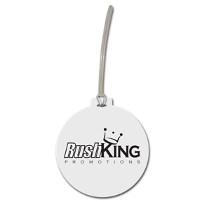 • Luggage Tag shaped like a circle with tab. Made in the USA and Union Made.