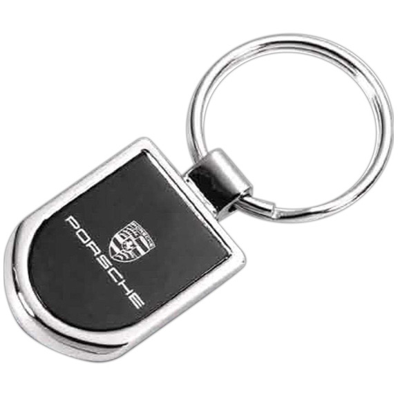 • Shiny silver keytag with lacquered black plate inset