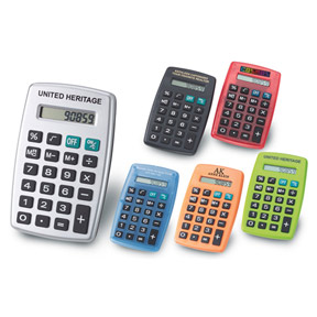 • These handy calculators are great as giveaways. They are used over and over and include batteries. Suggested imprint color is white on black, or black on all the other colors.