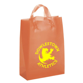 • Frosted brite color plastic shopping bag with matching fused loop handles, side and bottom gussets and cardboard bottom insert. 3.0 mil thick.