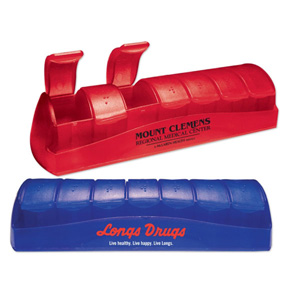 • Larger capacity compartments handle multiple medications or vitamin regimens with ease. Large imprint areas on front assure that the advertising message won`t be missed. Sure to be an appreciate gift, the Jumbo 7-Day Med Minder is a great advertising vehicle for retirement homes, clinics or home health related companies.