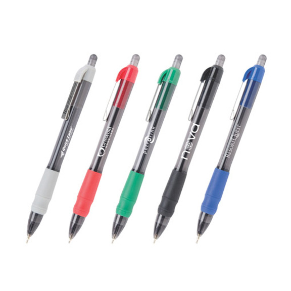 • Well, you`ve met the Stick, now meet the Click - The MaxGlide Click Corporate has the same gel experience with a ballpoint`s consistency, but in a click retractable. An air-cushioned grip in 5 executive trim colors, attractive smoky barrel and plunger, along with our patented MaxGlide hybrid blue or black ink cartridge are just a few of the great features. To preserve the integrity of our hybrid ink, a wax tip has been applied. Remove wax tip prior to use.