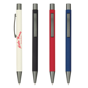 • Plunger action. Rubberized aluminum pen. Black ink. Medium point.