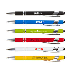 • This aluminum rubberized stylus click pen features chrome accents and a matte rubber coating for better grip and soft touch to the hand.
