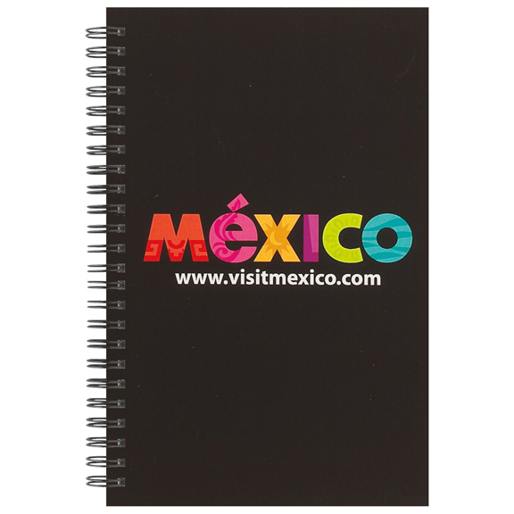 • Brilliant full-color front cover on glossy 120# cover stock (only customization available). 70 sheets of 50# lined filler. Black 40pt. paperboard back cover. Black wire binding. Shrinkwrapped in sets of 5.