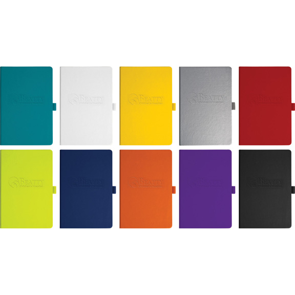 • Elevate your brand with this full color, custom bound journal. Features a built in elastic closure, ribbon page marker, document pocket on back cover and 96 sheets of white paper. Customizable oversize blind deboss deocation included in pricing.