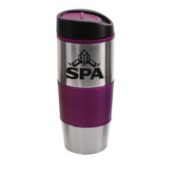 • 16 oz. Insulated stainless steel tumbler with rubber sleeve.Mug liner is PP material and BPA free. Individually poly bagged and boxed. Hand wash is recommended