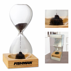 • The coolest desktop timer on the market has magnetic appeal! Flip this glass timer and the fine metal filings work their way down to the genuine wood base with magnetic disc, creating a uniquely striking, fuzzy looking shape each time. Each timer is individually packaged in a clear display gift box