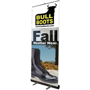 • 31.5 inch economy banner display kit includes retractor display, banner graphic and carry case. Our best selling retractable banner features the best top laminate in the industry. Lightweight, portable, sets up in seconds and drops down into the cartridge for protection and storage. Perfect for meetings, point of sale, presentation and tradeshows.