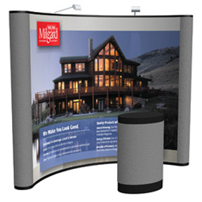 • 10 foot Curved Floor Display - Display kit with mural center panel and fabric end panels made of recycled plastic, double LED light kit, hardware bag and display hard case with wheels. Ideal for tradeshows, this is our best selling pop-up! Unique modular frame provides unlimited display configurations and expansion possibilities as you grow. User friendly hinged magnet rail allows fast and easy set-up, backed by a lifetime frame warranty..