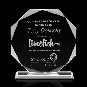 • This beautiful octagonal award features delightful bevels around each side, emphasizing each vertice along its geometric face.