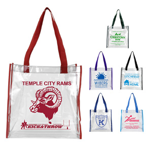 • Go for the touchdown with this new clear Stadium Tote Bag with popular trim color options. The 20 long reinforced handles make it easy to carry with you all day. Meets new Stadium Bag Policy Guidelines! Sports fans will be cheering all season long. Material: Vinyl with 80GSM Non-Woven Polypropylene Side Accents and Polypropylene Webbing Handles. Meets CPSIA and Prop 65 specifications for lead, phthalates and other heavy metals.