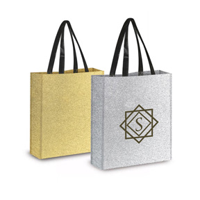 • Looking to put a little bling in your tote bag? Our Hollywood Glitter Tote Bag features a non woven, polypropylene glitter finish tote bag, 120 GSM.