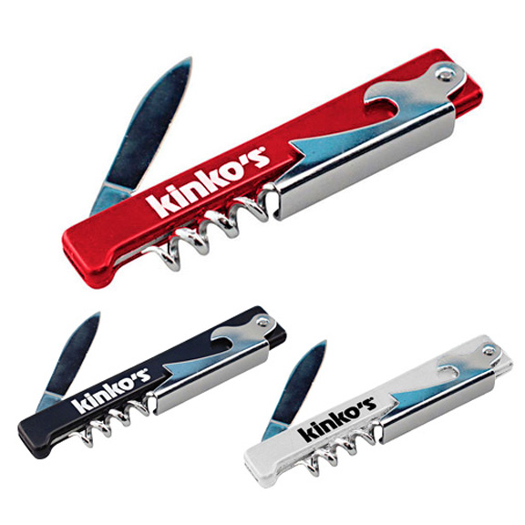 • Waiter`s Corkscrew - Wine bottle opener with built-in pocket knife. Great for cutting a little cheese to go with that wine. Perfect pocket sized tool for every waiter. For restaurants, wine bars, home and more. Available in red, black or white