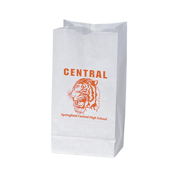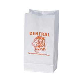 • Unlined paper bags with serrated cut top, side and bottom gussets.  Ink Imprint.