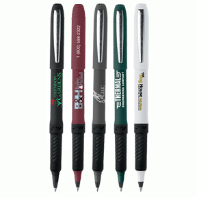 • - Textured black rubber grip.- Fast-drying ink for clean precise writing.- Two-piece roller with nickel-plated clip.