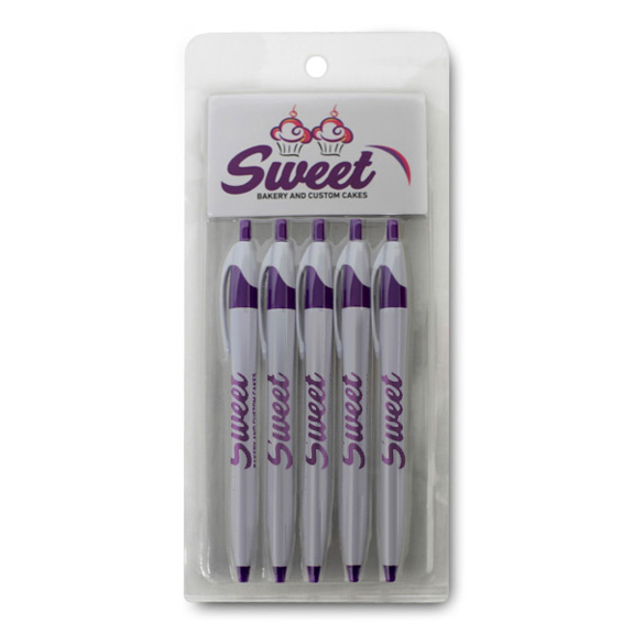 • PVC clamshell package contains slots for 5 pens.