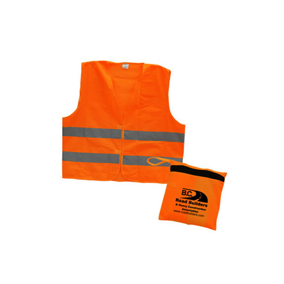 • High Visibility Reflective Safety Vest, Lightweight and Comfortable, 2 inch Wide Reflective Stripes, One Size Fits All, Conveniently Folded Inside A Zippered Pouch. (imprint on vest not available)