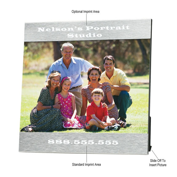 • Aluminum photo frame, 7 1/4 x 7 1/4, holds 5 x 7 photo.