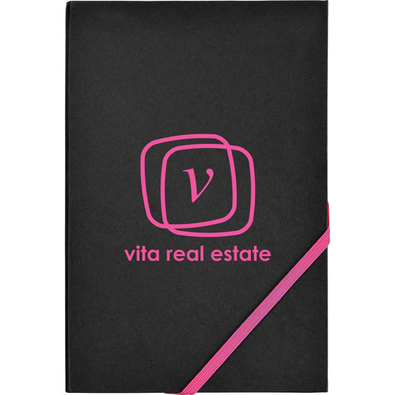 • Black notebook includes 80 ruled pages. Trendy, neon-colored paper edge with matching elastic band. Pen not included.