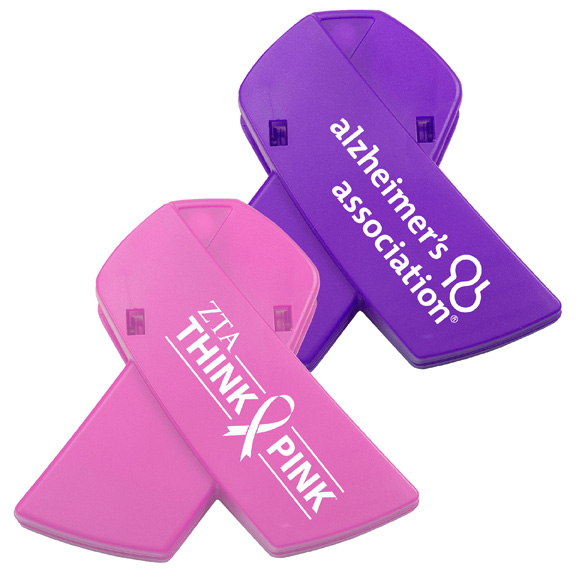 • Incorporate this ribbon clip with magnet in your awareness promotion for whichever causes are close to your heart! Measuring 3 1/2 W x 3 3/4 H, the polystyrene clip is offered in multiple product colors to be paired with your campaign and features a ribbon shape. Assorted colors are available in lots of 50 per color. Add a pad printed imprint of your organization`s name, logo or slogan to raise awareness for events and charities that your company supports!