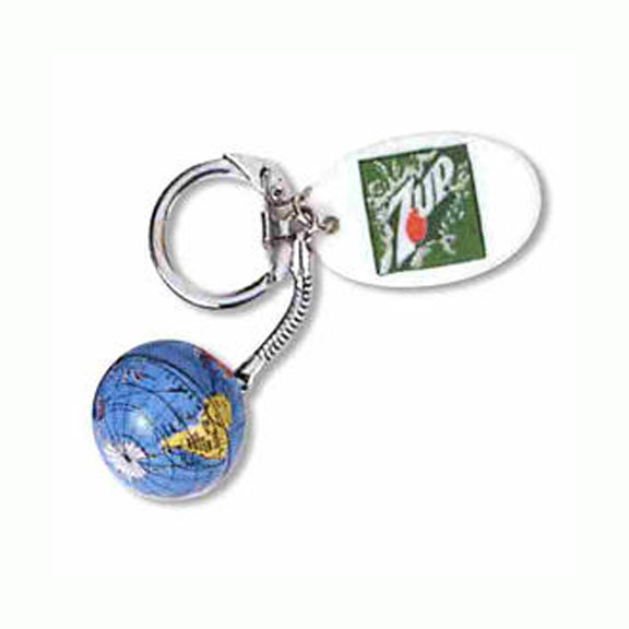 • These key chains come with a cute little hard plastic globe. The imprint is on an oval shaped tag attached.