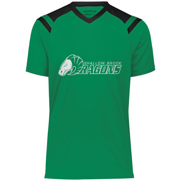 • Prepare for greatness in the High Five Sheffield Soccer Jersey. The contrast neck and shoulder inserts add a touch of style to this V-neck raglan sleeve jersey. This soccer jersey features a 100 percent polyester knit to keep you cool and dry as well as decoration-friendly color secure technology to help prevent dye migration from screen printing.