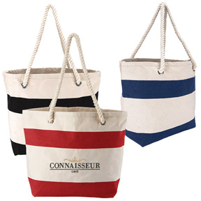 • Large 15.5 ounce cotton canvas beach tote with color accent stripes. Features 26 inch long rope handles. 100 percent cotton. Hand wash with damp cloth only. Not machine washable. Recommended weight tolerance is 17.5 pounds.