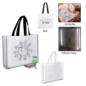 > # B-3369 Reflective Coloring Tote Bag With Crayons