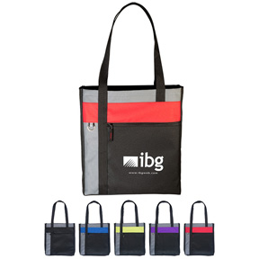 • 600 Denier Polyester tradeshow tote reminiscent of Mondrian`s famous color boxes. Large open main compartment. Front zipper pocket: 9.75 w x 10 h. Metal split ring on front to attach keys or badge. Hand-wash only, wipe clean with damp cloth. Store in a dry place away from direct sunlight . Recommended weight tolerance is 22 lbs.
