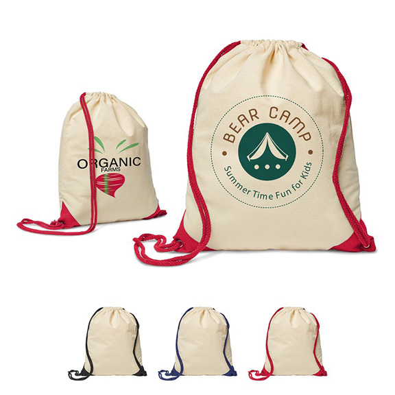 • Drawstring cinch up backpack made of all natural 5 oz cotton canvas with bottom corner dyed cotton canvas color accents. Drawstring colors match corner accent colors. To clean, wipe with dry cloth. Recommedned weight tolerance is 22 lbs.