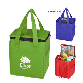 • Pack up for your camping trip or for a parking lot tailgate party with this non-woven Sierra Kooler bag! Available in several colors and made from 80 gram laminated non-woven, water-resistant polypropylene, this handy bag features foil-laminated PE foam insulation to keep your food and drinks cold. It also has a main zippered closure, a large front pocket, a side zip pocket and an ID holder. Spot clean/air dry. Customize with an imprint of your brand logo for increased corporate exposure.