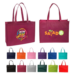 • Show how environment loving your brand is with our reusable and recyclable standard non woven tote. It is made of eco friendly 80 GSM non woven polypropylene material which is made from 10 percent post consumer recycled content.
