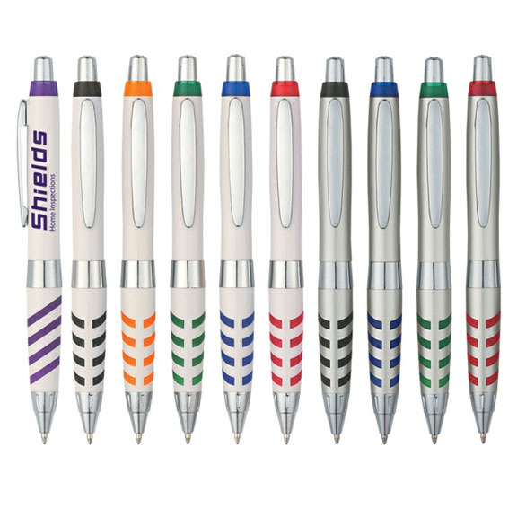 • Pen with rubber grip for writing comfort and control. Plunger action.
