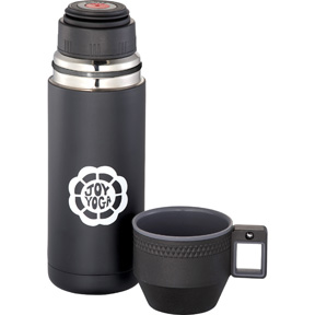 • Rugged construction heightens the durability of this double wall vacuum insulated 18/8 stainless steel bottle. Keeps drinks hot for 6 hours and cold for 24 hours. Ideal for taking out on the trail or for daily use. Twist on/off cap has open close function. Lid with handle doubles as 6oz drinking cup. Matte black body. 17oz.
