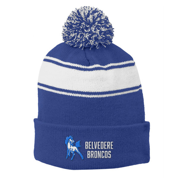 > # A-0771 Sport-Tek Stripe Pom Pom Beanie Hat