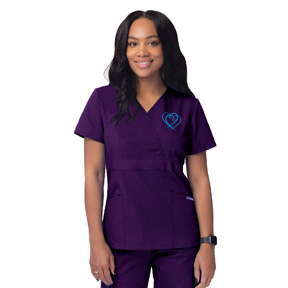• Classic Fit, Mock wrap neck binding,Empire midriff waist,Side vents for ease of movement,Two large slant pockets,65 percent Polyester 35 percentCotton, Poplin,