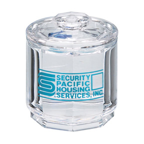 • Canister with lid. 11 oz capacity. Made in the USA.