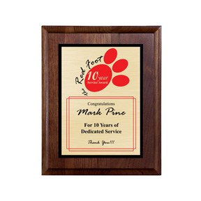 • Add something to your reception area wall of fame or give employees a gift they`ll be glad to put on display with this Nantucket plaque. A walnut panel compliments a gold-tone etching plate that features a personalized precision laser etching imprint. A keyhole back makes wall mounting easy. Making this plaque style the centerpiece of your next awards event is easy with your choice of available sizes, pick the one that works for you or honor your top achievers. No matter who you`re calling attention to, this gift is an excellent way to spotlight your organization`s key contributors. Order yours today!