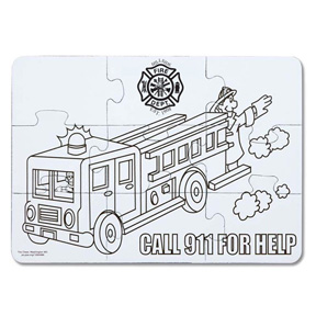 • Puzzle come assembled onto a chipboard tray and is shrink wrapped to a four pack of crayons. 9 piece puzzle printing is black on white.